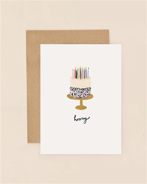 This best-selling mini card is small in size but big on sentiment. Its elegant and compact design makes it perfect for sending heartfelt wishes for any occasion, from birthdays to celebrations or simply spreading good vibes. The Cake Hooray Mini Card is a wonderful way to bring a smile to someone's face while sharing in their happiness.