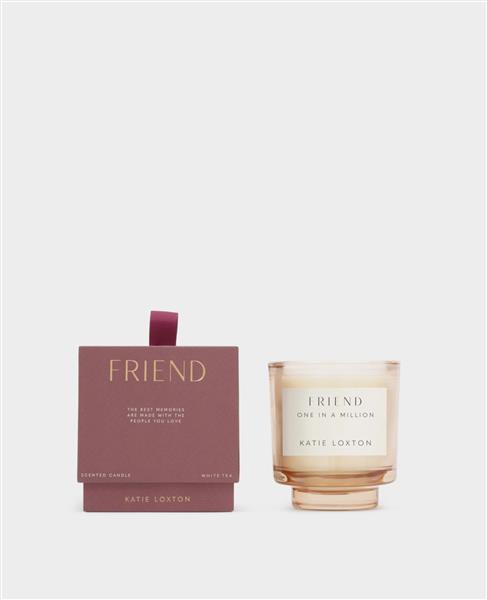 Our 'Friend' Sentiment Candle is housed in a chic coloured glass jar and presented in a sleek gift box, which is stamped with the one-word sentiment. Made from soy wax and infused with the delicate scent of English Pear and White Tea, it brings instant freshness to any space. The perfect way to show someone special you care..