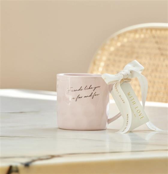 Our Gift Bow Mug in Light Pink features an organic, textured finish and a heartfelt golden sentiment stamped on the front, bringing a personal touch to your morning routine. Complete with a branded ribbon and colour-pop tag, it arrives perfectly packaged and ready to gift, whether it’s a treat for yourself or someone special.