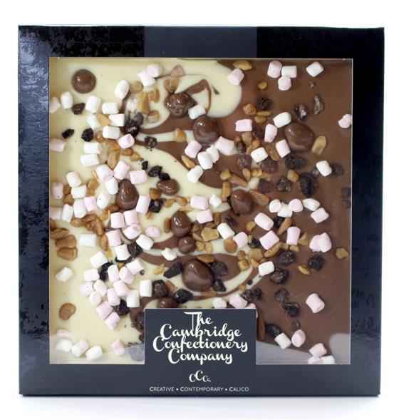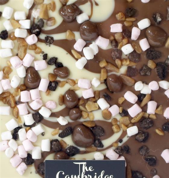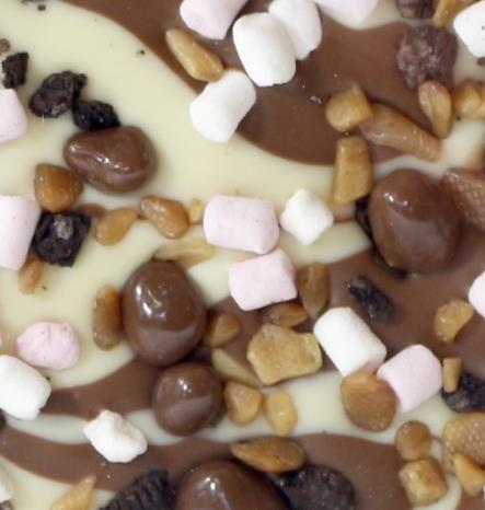 A bit of everything! Milk & white chocolate generously topped with honeycomb, toffee, cookie pieces and marshmallows.