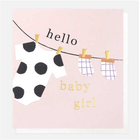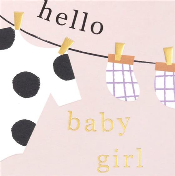 'hello baby girl' washing line card features gold foil and embossing for that extra special touch.🎀