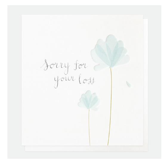 Caroline Gardner Card. Send your deepest sympathies with this tasteful card. This card has been printed on board using a low chlorine pulp from sustainable forests and can be recycled.