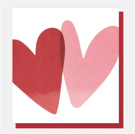 Send some love with this cute red & pink overlapping hearts card, ideal for Valentine's Day, a birthday or anniversary, or just because. This card features embossed detail for that extra special touch.